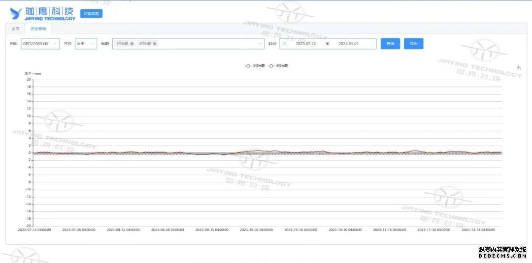 1. 設備選型與安裝:根據水庫大壩的具體情況,選擇了珈鷹JY-TV-Dam型大壩變形監測儀。在大壩基準墩上安裝高精度自動化變形監測儀,利用珈鷹自研JY-CDM01軟件對相機的畸變參數和位姿進行標定,自動評價圖像質量并進行優化調整。